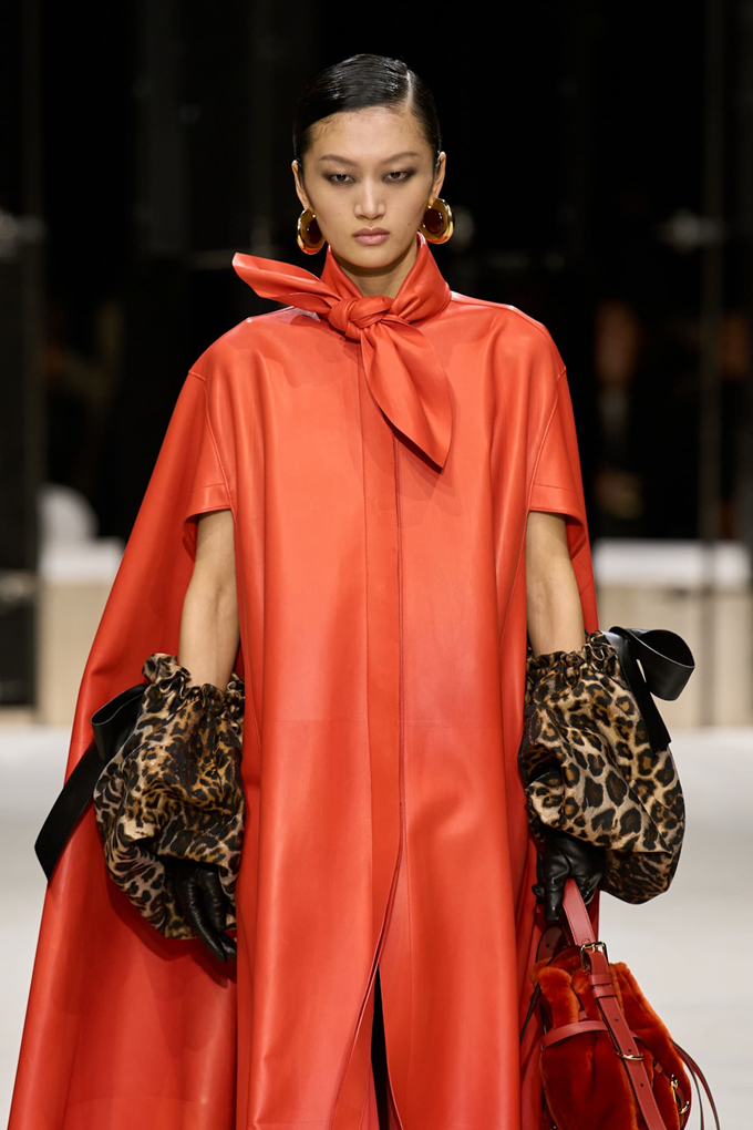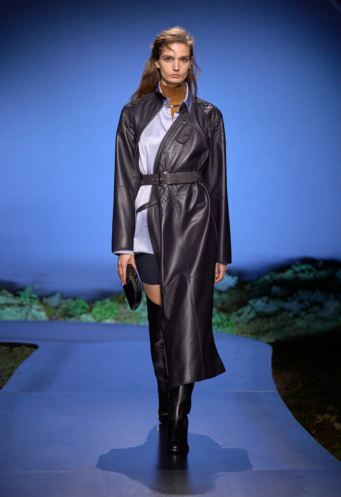 가죽 특유의 광택감과 부드럽게 흐르는 듯한 유려한 테일러링의 고급스러운 가죽 드레싱도 다양한 수공기법을 접목해 강렬한 존재감을 발산했다.