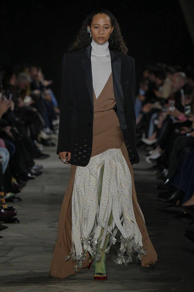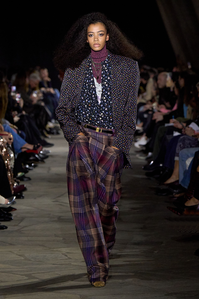 디올, 드리스 반 노튼, 아크네 스튜디오 등은 테일러링과 아우터에 여러 체크 패턴을 겹쳐 활용했고, 끌로에는 러플 장식의 하이넥 맥시 드레스로 보헤미안 감성을 고수했다.
