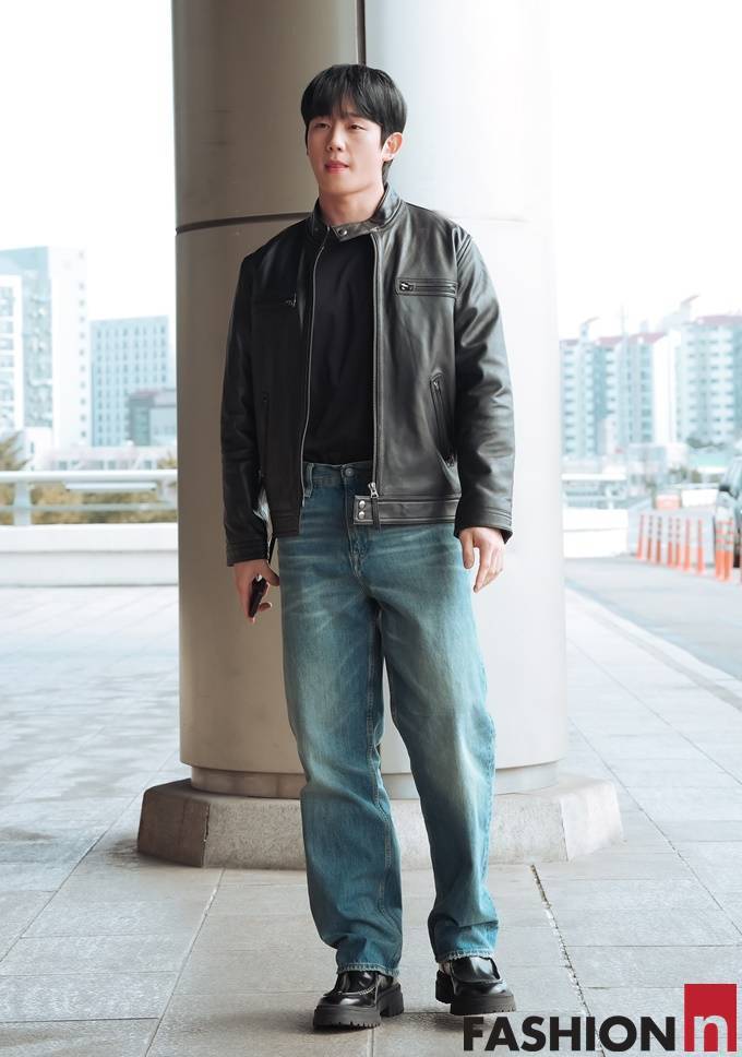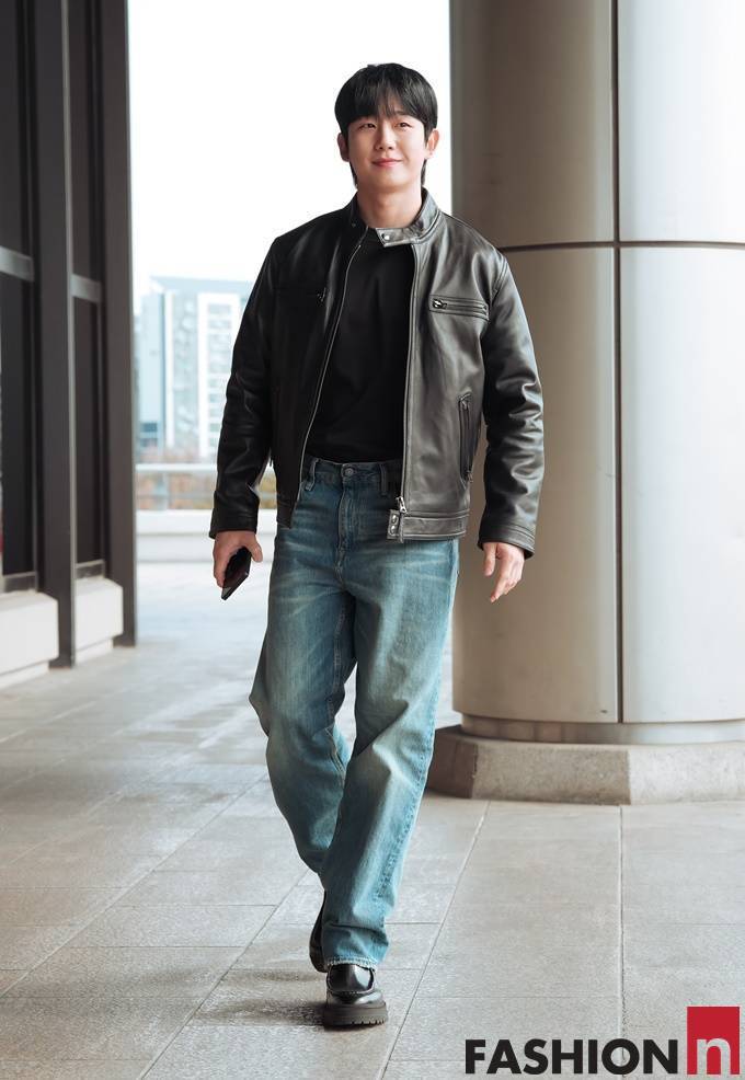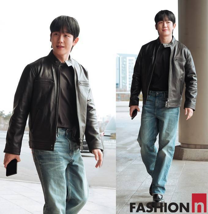 3. 3.[패션엔 포토] 정해인, 가죽 재킷과 청바지 조합! 강렬한 존재감 록시크 라이더룩 ...