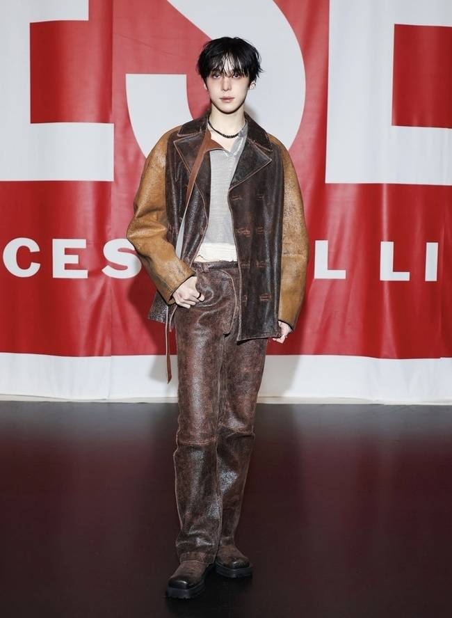 31. 에이티즈(ATEEZ) 멤버 윤호는 밀라노 패션위크 2026 F/W 디젤 패션쇼에서 투톤 컬러감의 빈티지한 레더 슈트룩으로 존재감을 발산했다.