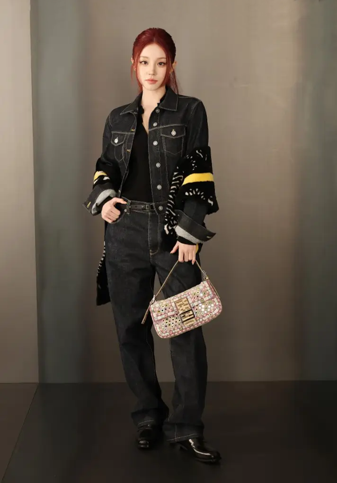 22. 걸그룹 아이들 우기는 밀라노 패션위크 2026 F/W 펜디 컬렉션에서 스티치 디테일의 데님 셋업룩을 연출했다.