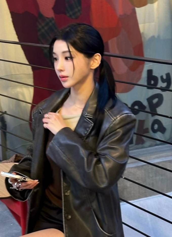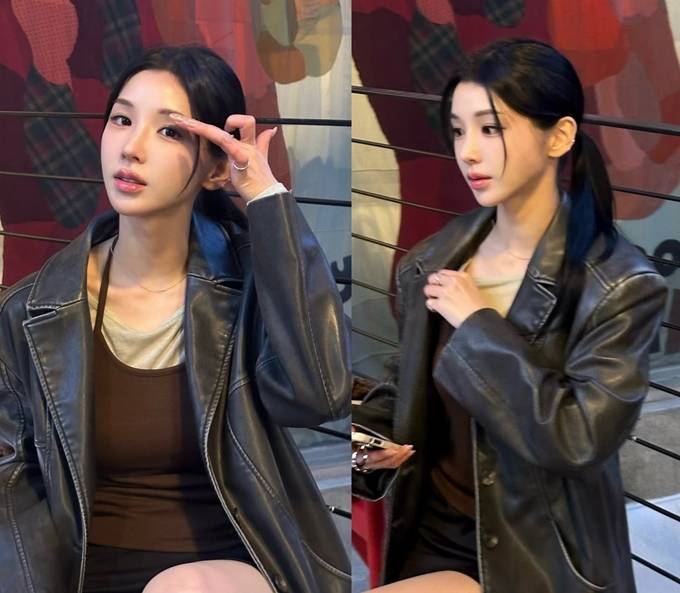 2. 2.‘강석우 딸’ 강다은, 가죽 재킷 하나만 걸쳐도 강남여신! 오버핏 빈티지 레더 재킷룩