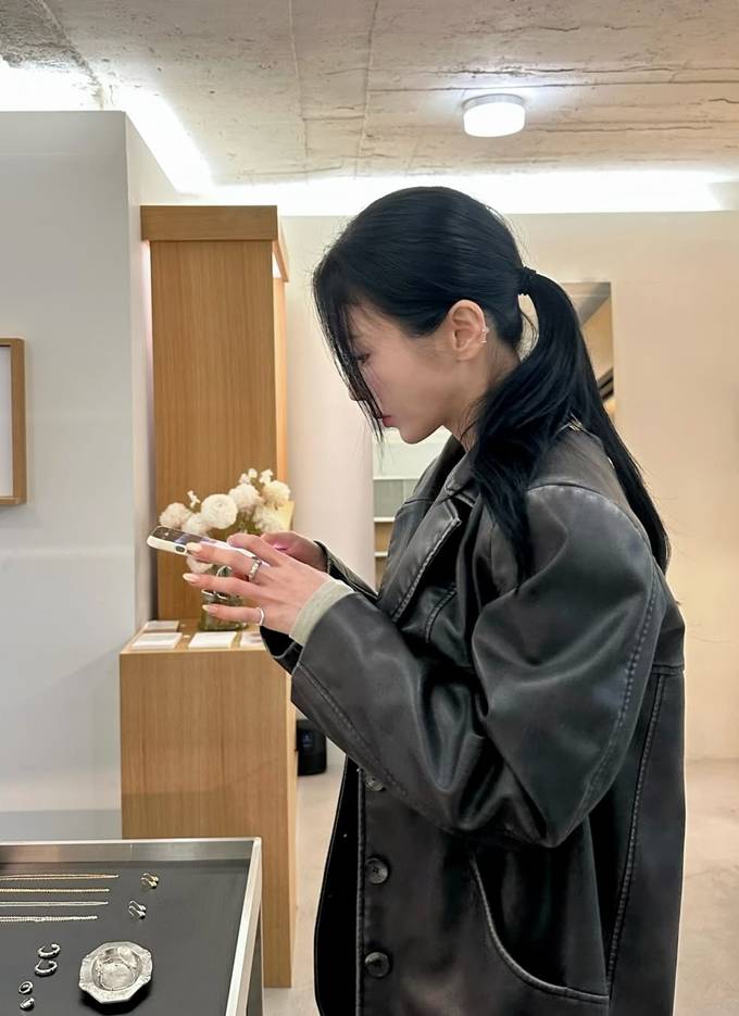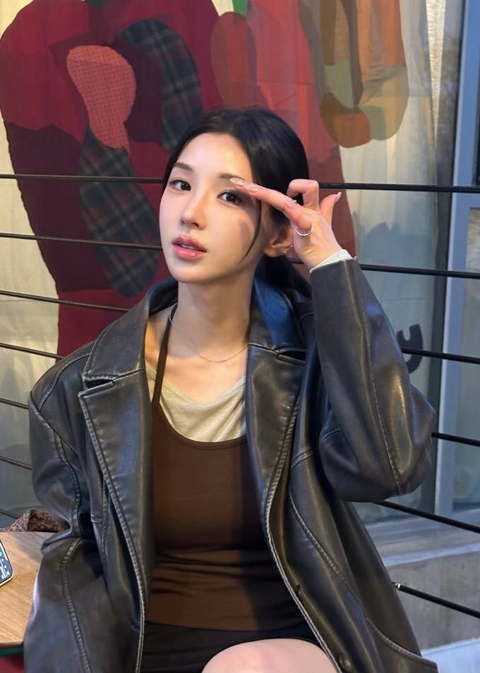 공개한 사진에서 강다은은 아이보리 이너에 브라운 컬러의 톱을 레이어드한 스타일에 오버핏 빈티지 레더 재킷을 걸친 데일리룩으로 시크하면서도 단정한 스타일을 완성했다.