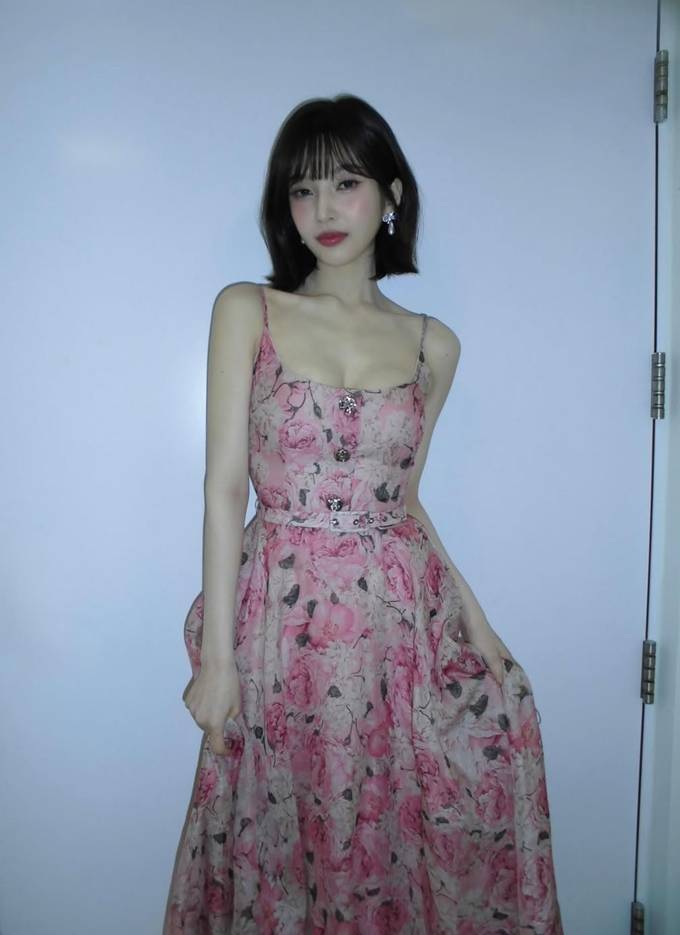 공개한 사진에서 조이는 화사한 꽃무늬가 디자인에 잘록한 허리 라인이 강조된 슬립 플로럴 원피스룩으로 러블리하면서도 로맨틱한 분위기를 자아냈다.