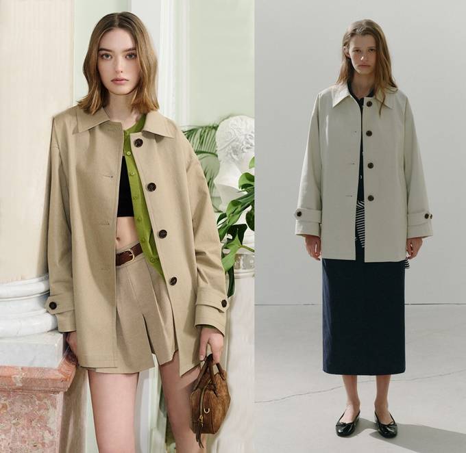 트렌치 코트는 봄과 가을 스테디셀러 아이템으로 무릎 아래로 길게 떨어지는 클래식한 트렌치 코트 대신, 하프 기장 트렌치 재킷이 트렌드로 부상했다.