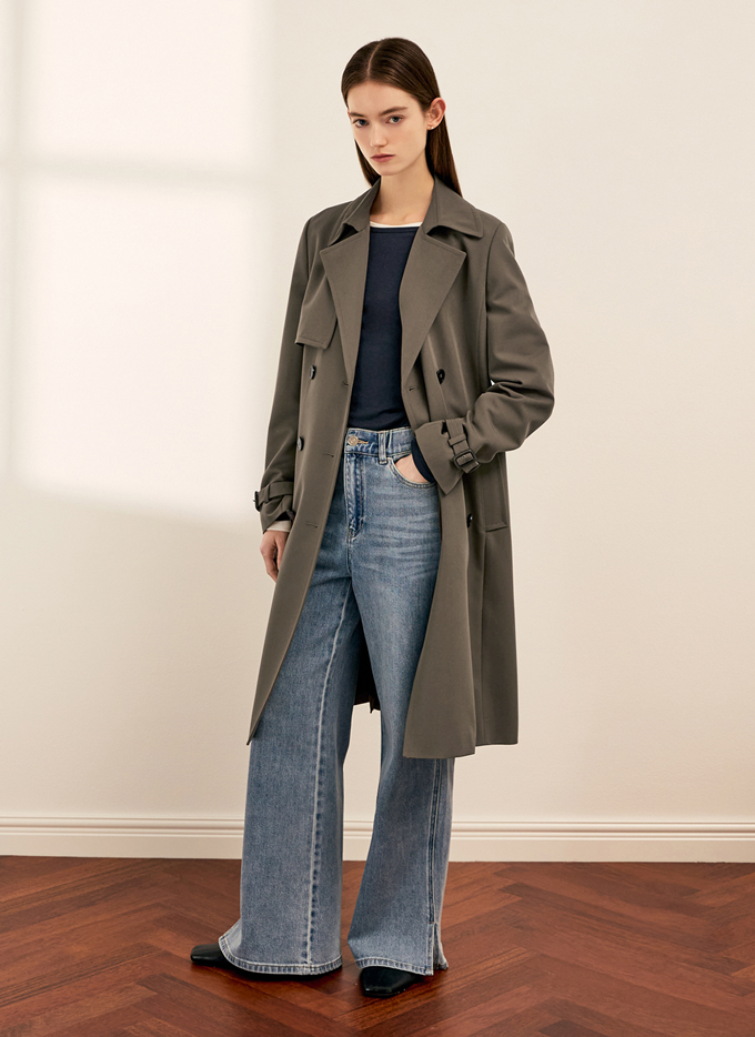 '쉬즈미스' 트렌치 코트는 벨트와 건플랩 디테일로 고급스러움을 더했으며 더블 브레스트 여밈으로 클래식한 무드를 연출한다.