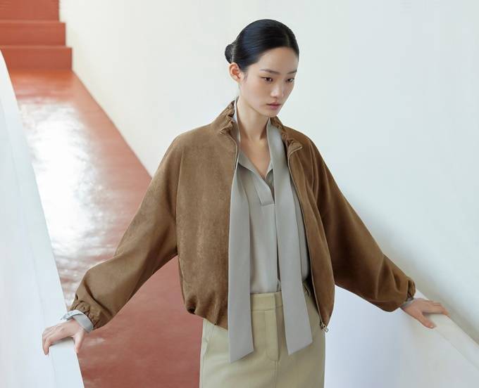 '쉬즈미스' 스웨이드 재킷은 고급스러운 색감과 부드러운 터치감, 여유로운 실루엣이 조화된 싱글 버튼 여밈의 클래식한 스타일로 클래식과 빈티지한 멋이 공존한다.