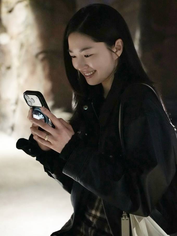 3. 3.한지민, 손목까지 롤업! 10살 연하 남친 가죽 재킷 입었나? 오버핏 레더 외출룩