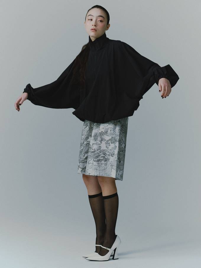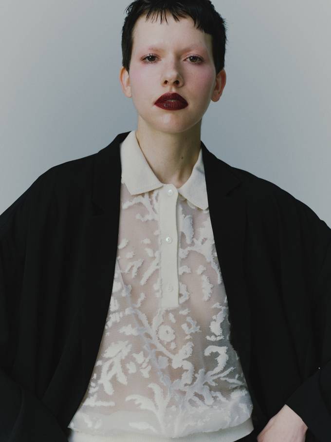 특히 풍부한 텍스처와 소재를 활용한 입체적인 표현이 돋보이며, 원단 위에 패턴이 조형적으로 드러나는 엠보싱 디테일과 시어한 소재를 접목해 가벼우면서도 깊이감 있는 스타일을 완성했다.