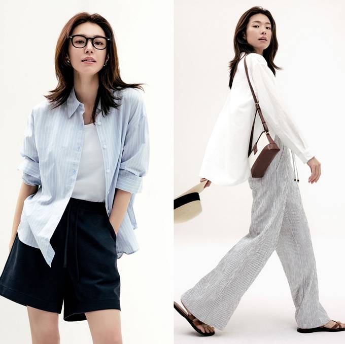 또 다른 착장에서는 얇고 시어한 소재의 셔츠를 활용해 여유로운 분위기를 강조했으며, 여유롭게 떨어지는 와이드 핏 팬츠와 매치해 편안하면서도 슬릭한 감성의 데일리룩을 선보였다.