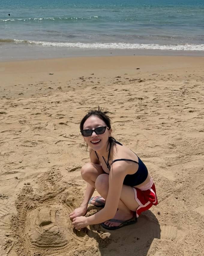 공개한 사진에서 표예진은 블루 스카이 컬러의 슬립 원피스와 레드 컬러의 반바지와 블랙 컬러의 크롭톱의 비치룩으로 귀여우면서도 탄탄한 몸매를 자랑했다.