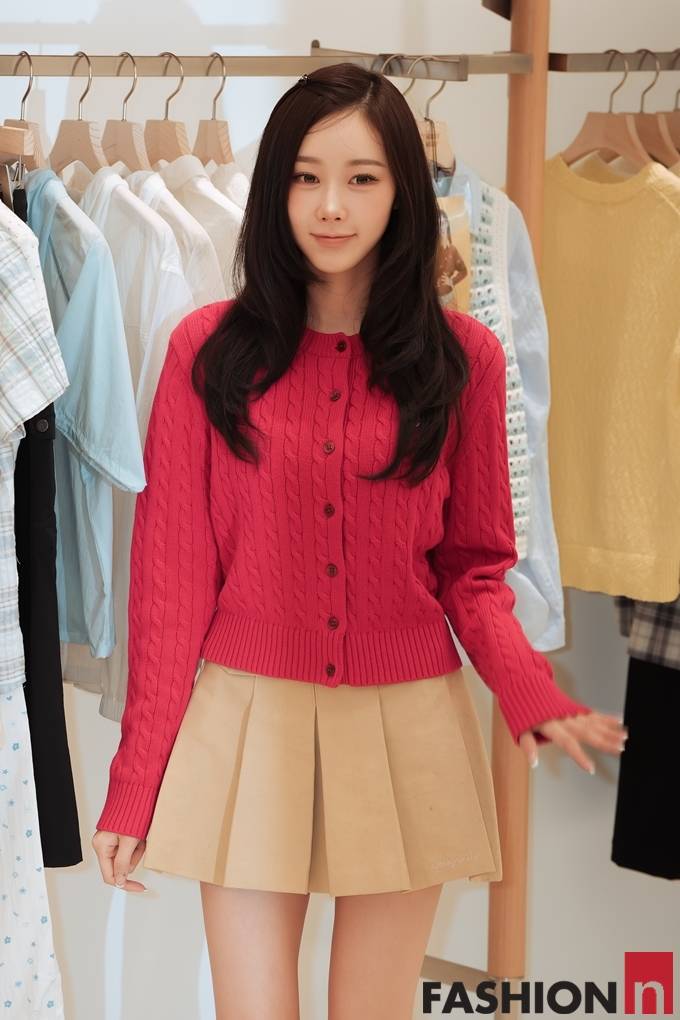 [패션엔 포토] 에스파 지젤, 화사하게 봄이 내려 앉았네! 러블리한 싱그러움 레드와 베이지 프레피룩