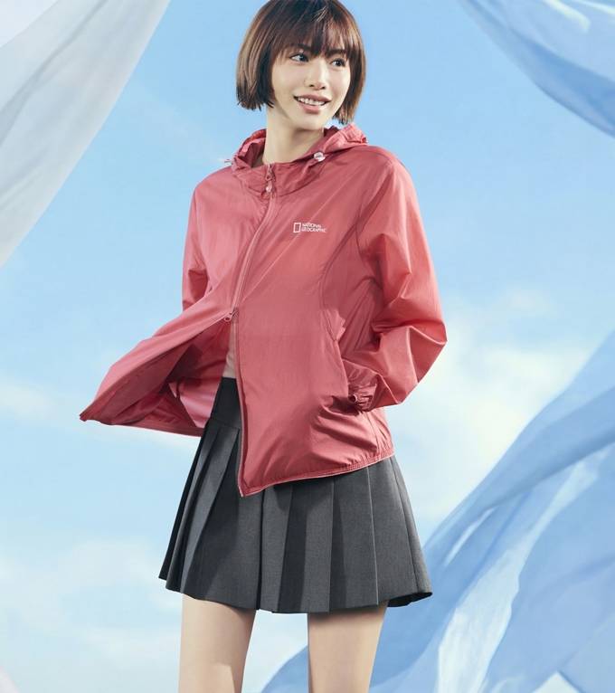공개된 화보에서 나나는 가벼운 착용감과 방풍 기능에 패커블 기능을 적용해 여행이나 야외 활동 시 휴대성이 높은 바람막이 재킷에 플리츠 스커트와 카고 팬츠를 매치해 스타일리시한 애슬레저룩을 완성했다.