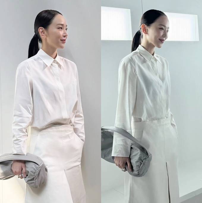 공개한 사진에서 신혜선은 클래식한 카라 디자인과 부드러운 소재감이 돋보이는 깨끗한 화이트 셔츠와 하이웨이스트 롱 스커트를 매치한 슬림한 스타일의 올 화이트 스프링룩으로 세련된 미니멀 스타일의 정수를 보여줬다.