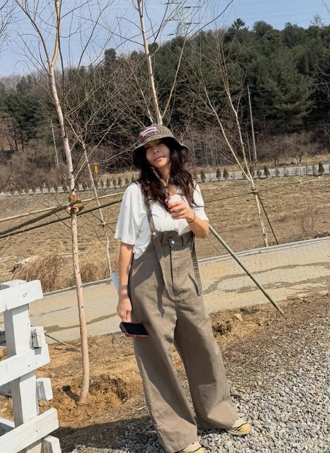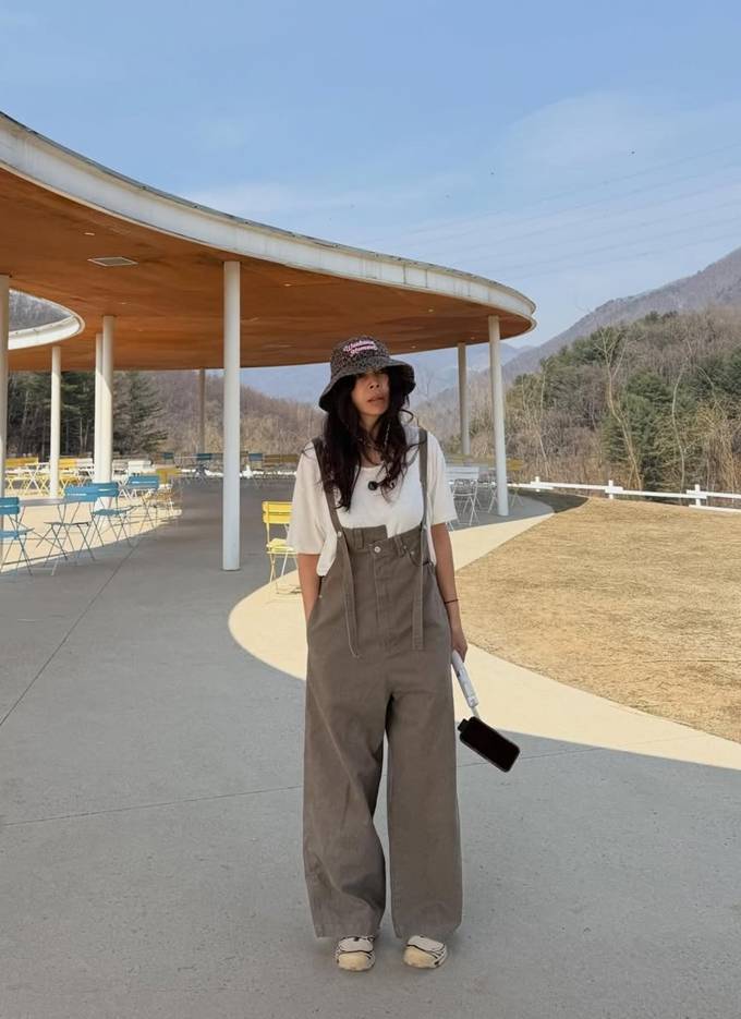 황신혜, 앞서가는 60대 패셔니스타! 가평에 봄이 일찍 반팔에 멜빵 가벼워진 봄 나들이룩
