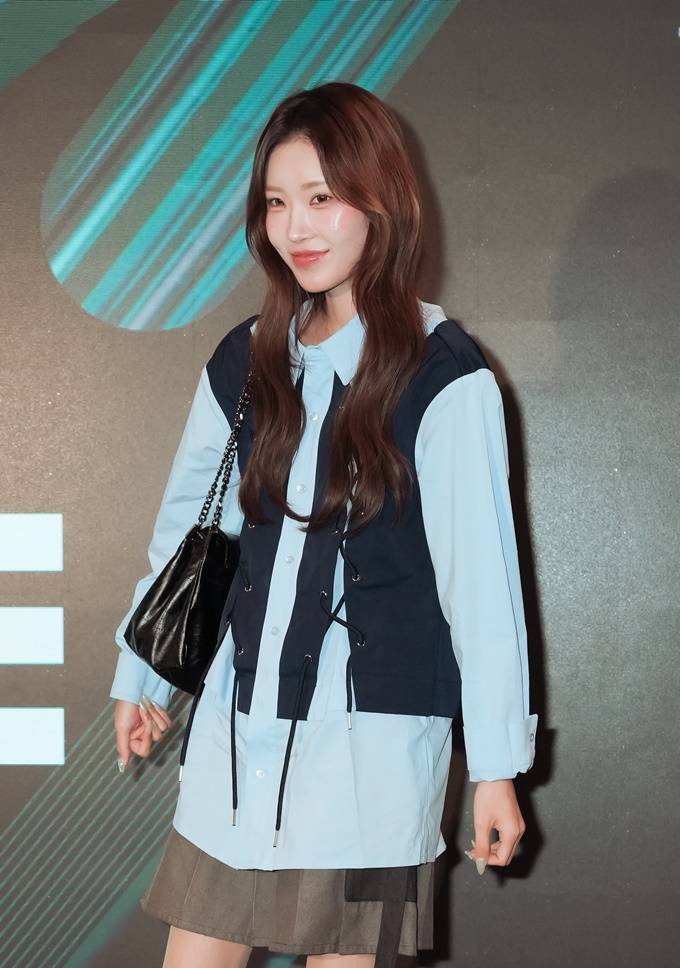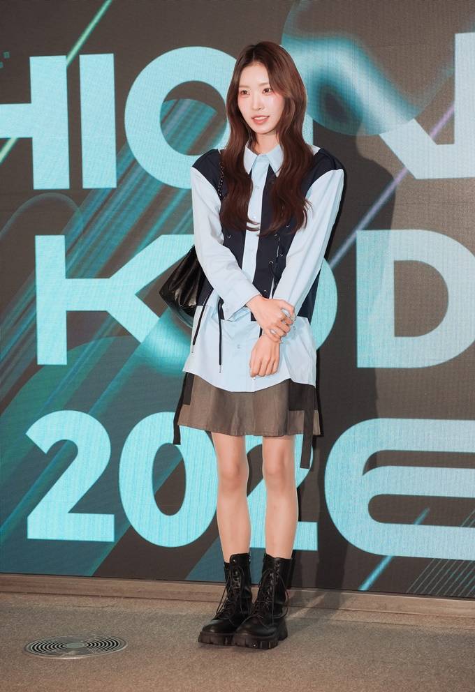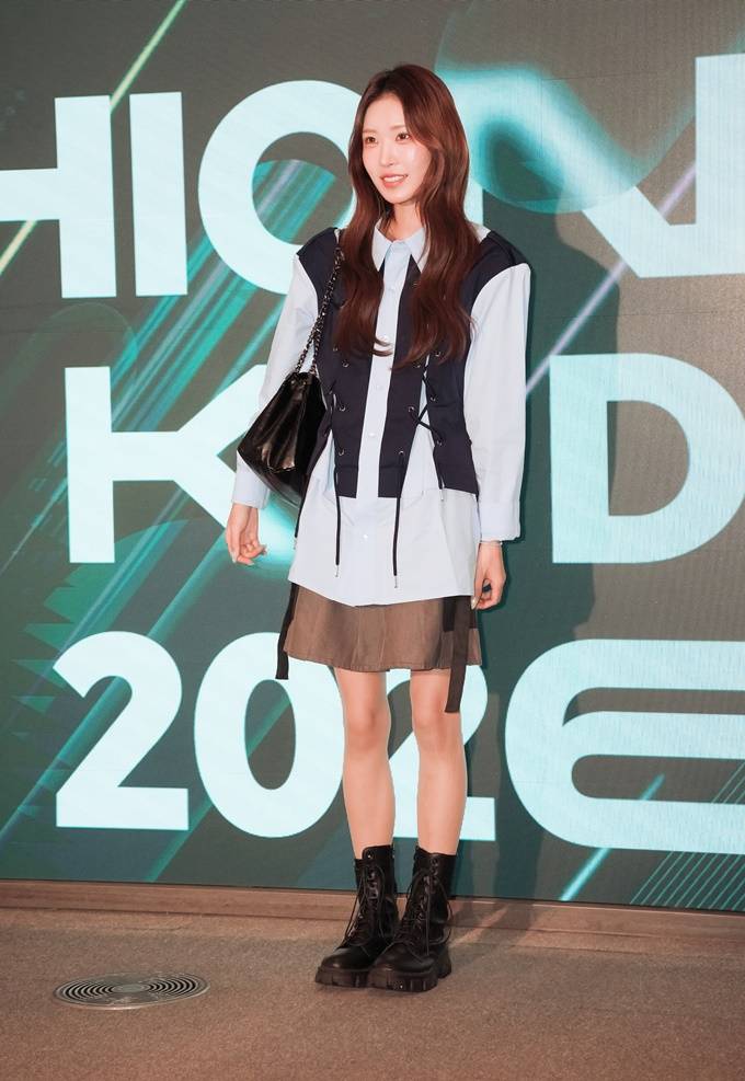 이날 최준희는 조끼 형태의 디자인이 프린트된 실험적인 셔츠 슈트룩으로 세련되면서도 당당한 카리스마를 발산했다.