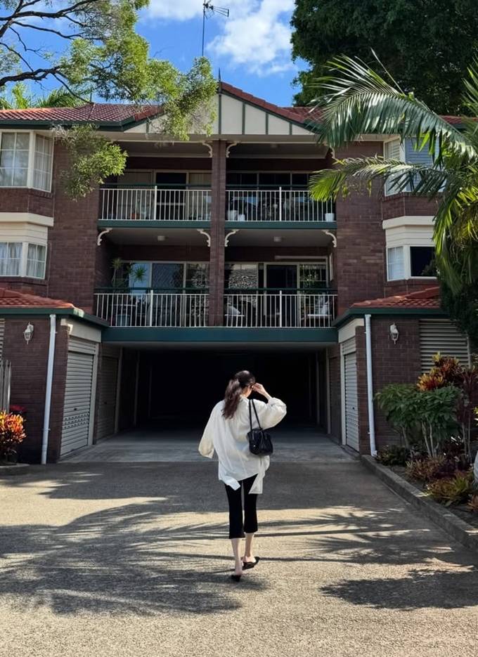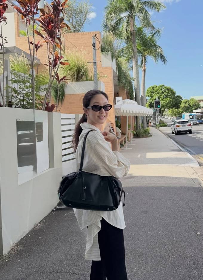 배우 정려원이 호주에서 루즈 핏 스트라이프 셔켓 산책룩으로 여유로운 분위기를 만끽했다.