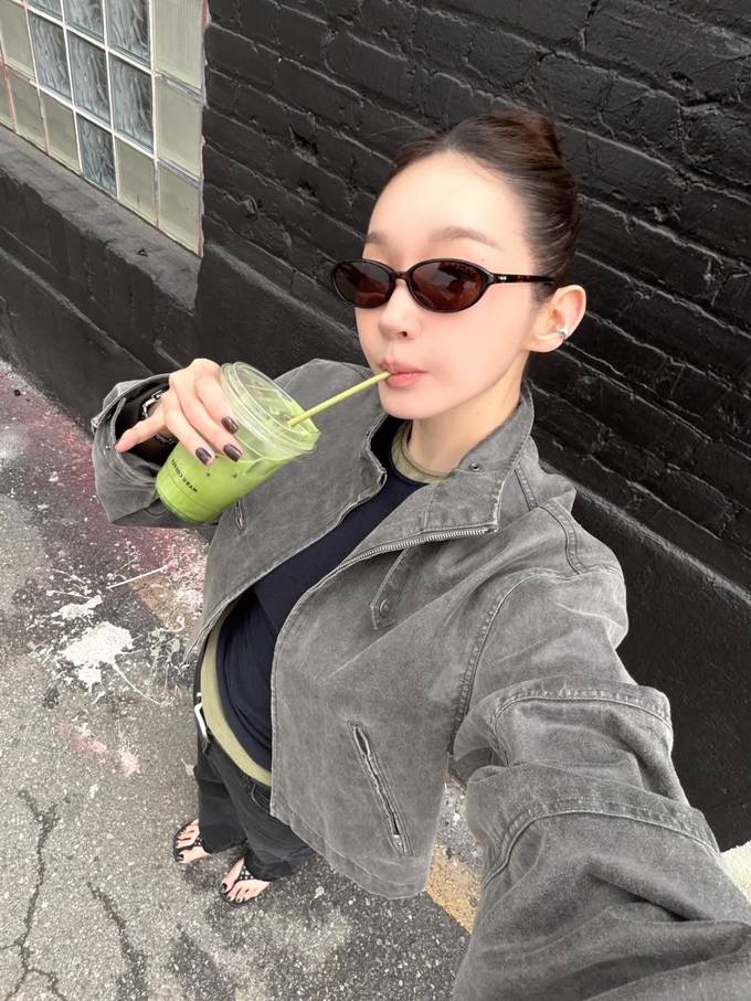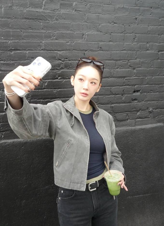 4. 4.‘강석우 딸’ 강다은, 아빠 재킷 입었나? 여리여리 오버핏 레더 재킷 봄 산책룩