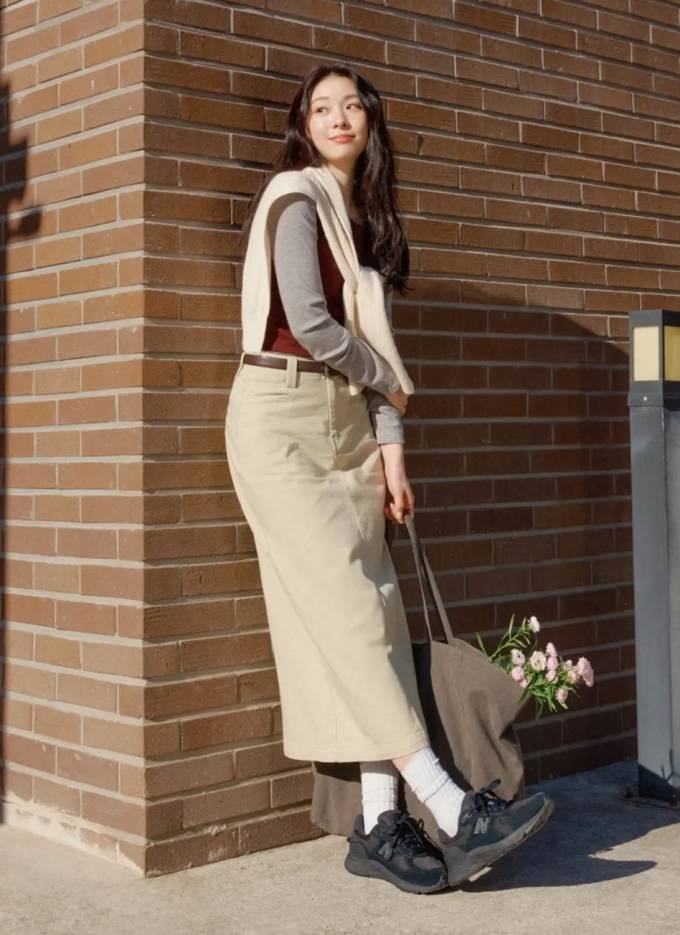 공개한 사진에서 김연아는 화사한 니트 카디건에 짧은 쇼츠를 매치한 화사한 스타일, 베이지 톤의 롱 스커트에 브라운 톱을 입고 니트를 어깨에 두른 스타일로 스포티하면서도 단아한 미모를 드러냈다.