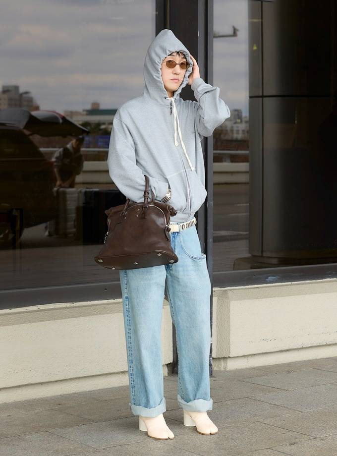 여기에 타비 앵클부츠와 미디엄 백을 매치해 자이언티만의 독보적인 공항패션을 완성했다.