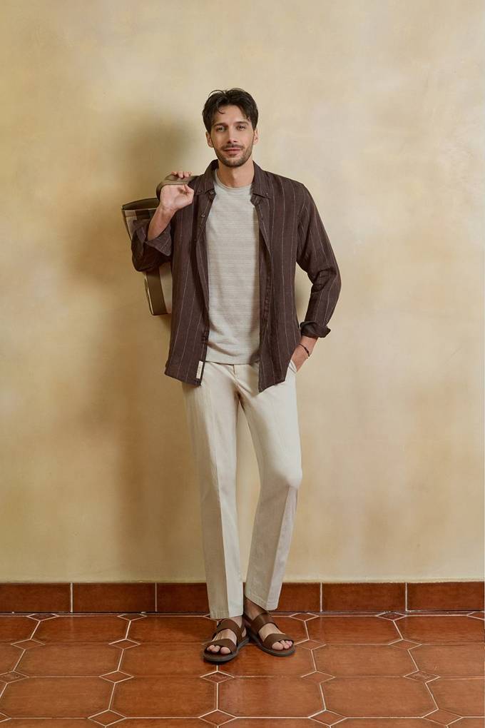 스트라이프•투톤 조직의 텍스처드 스웨터, 린넨 100%부터 레이온 혼방까지 다양하게 구성되어 초여름까지 편하게 입을 수 있는 셔츠, 기능성 소재의 반팔 피케 티셔츠 등 경량 아이템이 주력이다.