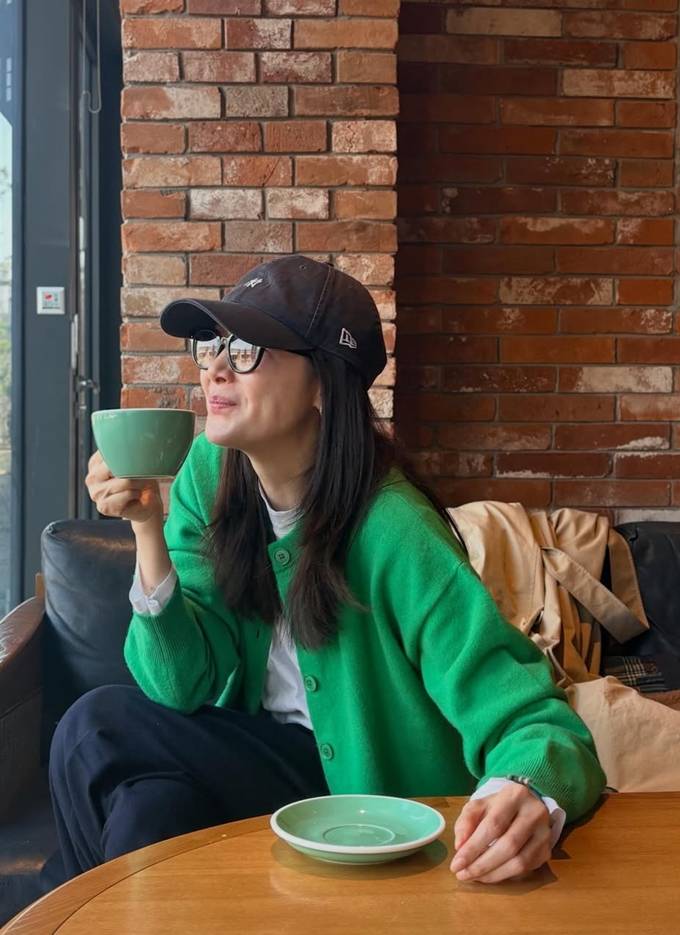 공개한 사진에서 최지우는 볼캡에 그린 컬러의 니트 카디건에 매치한 심플한 모습과 빈티지한 레더 재킷을 착용한 힙한 모습의 데일리룩으로 50대의 꾸안꾸 미모를 드러냈다.