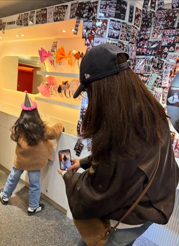 최지우, 6살 딸과 소소한 일상! 니트 카디건과 레더 재킷으로 끝 꾸안꾸 데일리룩
