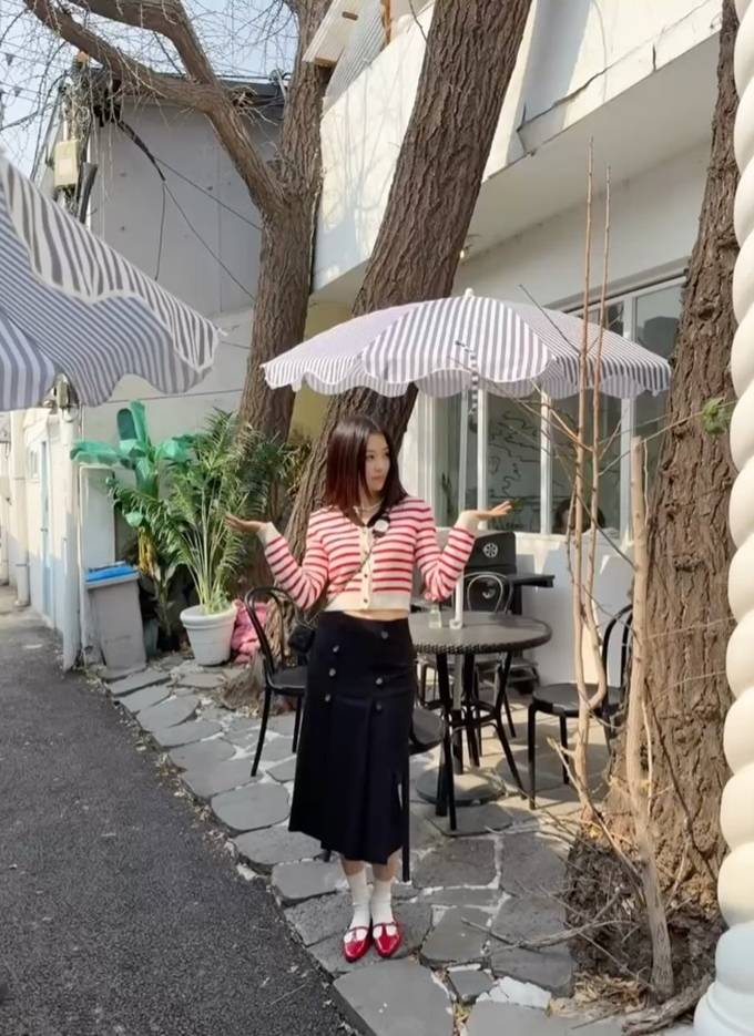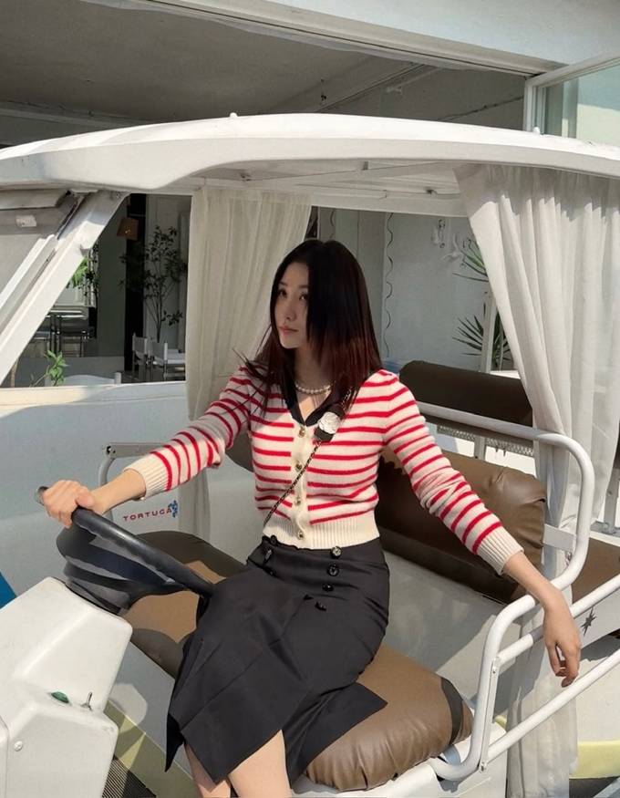 공개한 사진과 영상에서 박하선은 크림 컬러 바탕에 레드 스트라이프 라인이 더해진 카디건에 버튼 디테일에 슬림한 핏이 더해진 하이웨이스트 디자인의 다크한 스커트를 매치한 프레피룩으로 단정하면서도 생동감있는 분위기를 드러냈다.