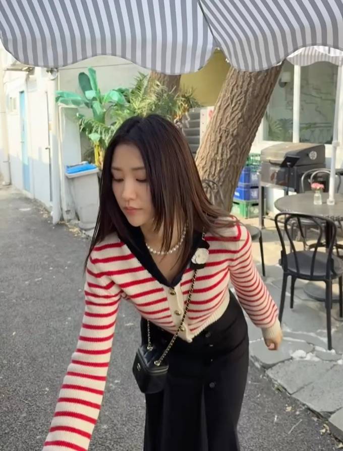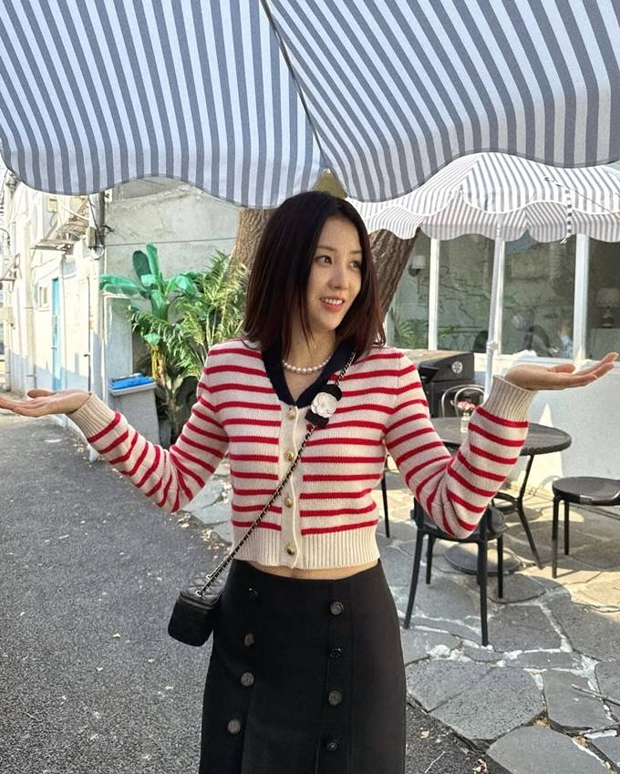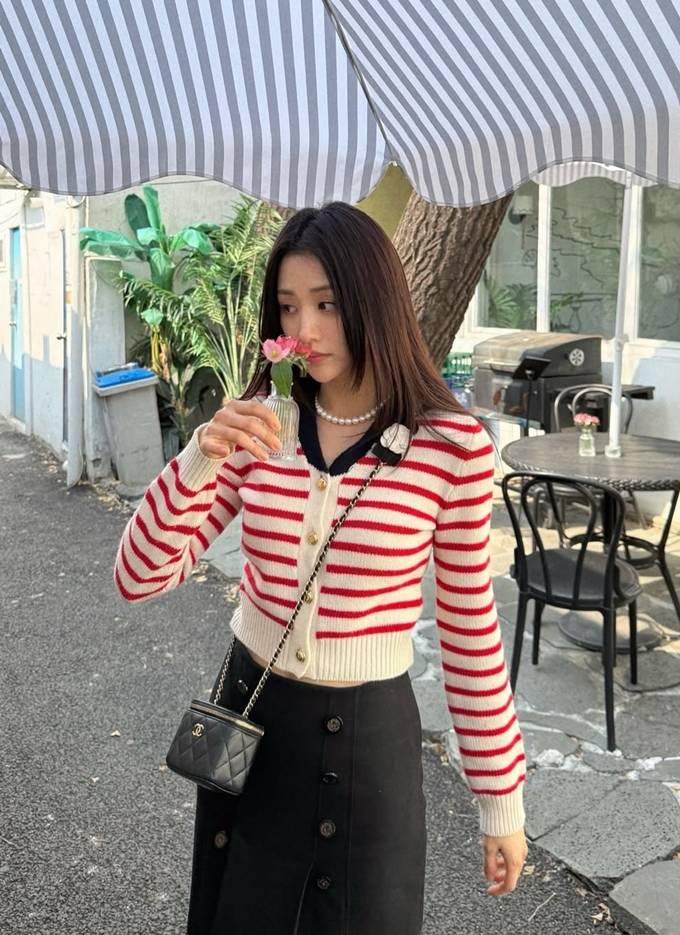 박하선, 스트라이프로 봄 스타일 고민 끝! 스트라이프 니트 카디건 프레피룩