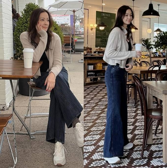 공개한 사진에서 손태영은 블랙 이너에 크롭 니트 카디건을 걸쳐 더 슬림해 보이는 스타일에 A자 핏의 데님 팬츠를 매치해 늘씬한 비주얼을 더욱 돋보이게 했다.