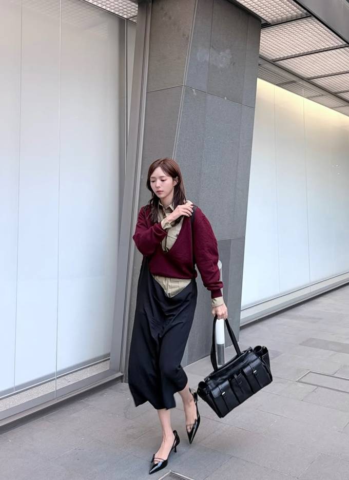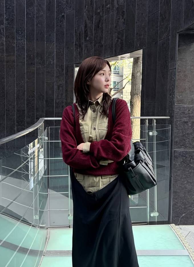 1. 1.채수빈, 봄 청순녀의 선택! 핫레드와 베이지 니트&셔츠 꿀조합 레이어드 외출룩