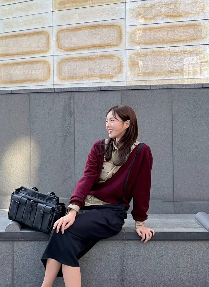 채수빈, 봄 청순녀의 선택! 핫레드와 베이지 니트&셔츠 꿀조합 레이어드 외출룩