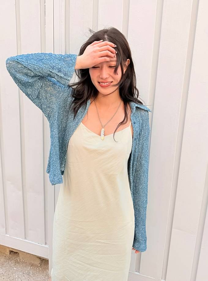 배우 임수향이 슬립 원피스에 블루 셔켓을 매치한 브런치룩으 성수동 스트릿을 장악했다.