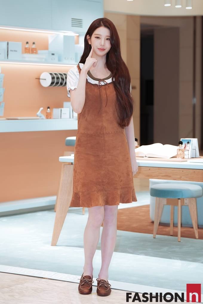 그룹 아이브(IVE) 장원영이 걸리시한 프릴 러플이 매력적인 스웨이드 원피스룩으로 여의도를 심쿵하게 만들었다.