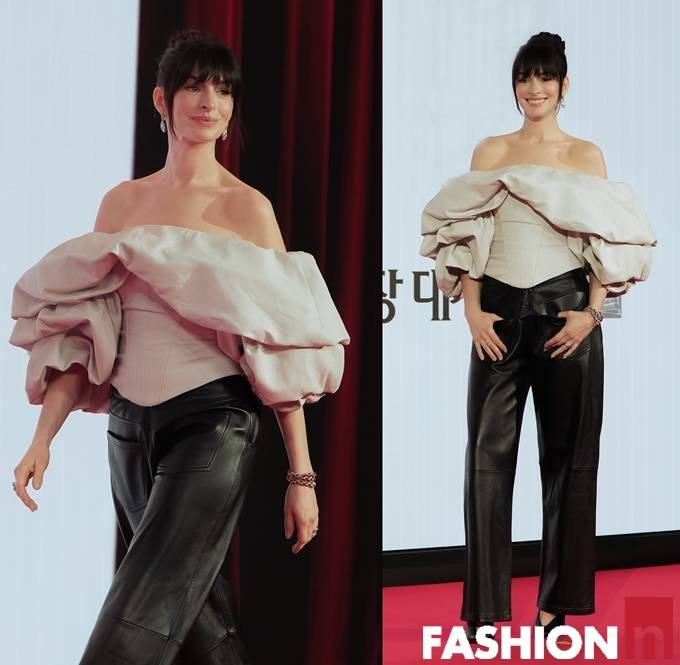 [패션엔 포토] 앤 해서웨이, 20년 지나도 동안 끝판왕! 압도하는 뭉게구름 오프숄더룩