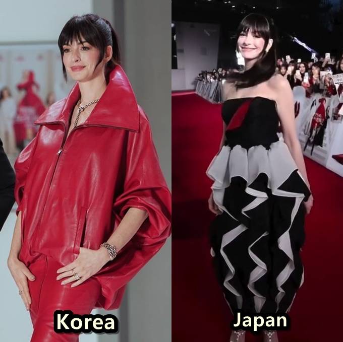앤 해서웨이, ‘악마는 프라다를 입는다2’ 팬들 난리 서울과 도쿄 프리미어룩 차이는?