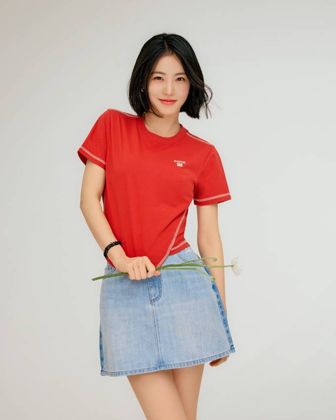 배우 신예은이 더블린 반팔 티셔츠로 한 발 빠른 섬머룩을 선보였다.