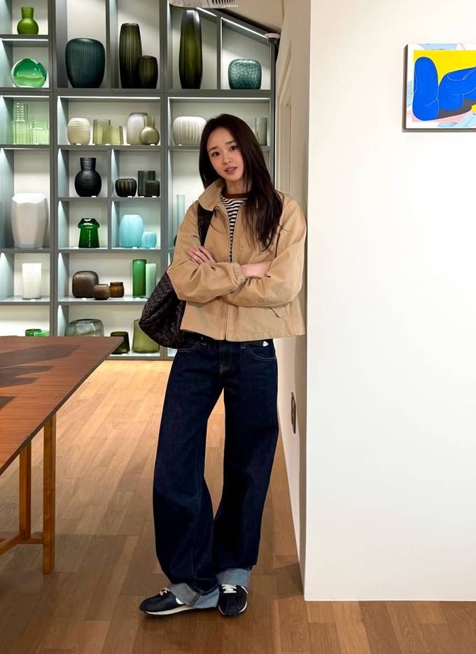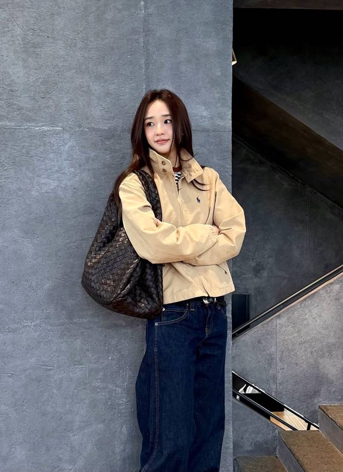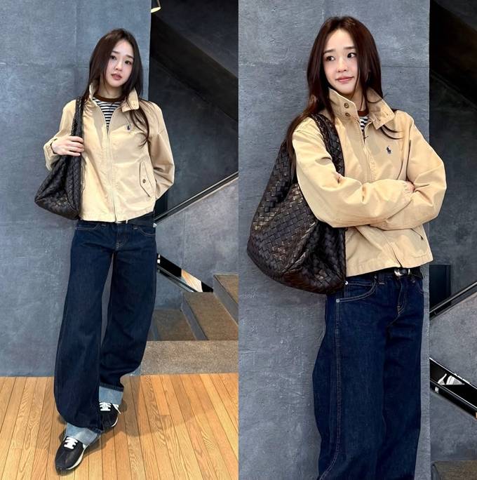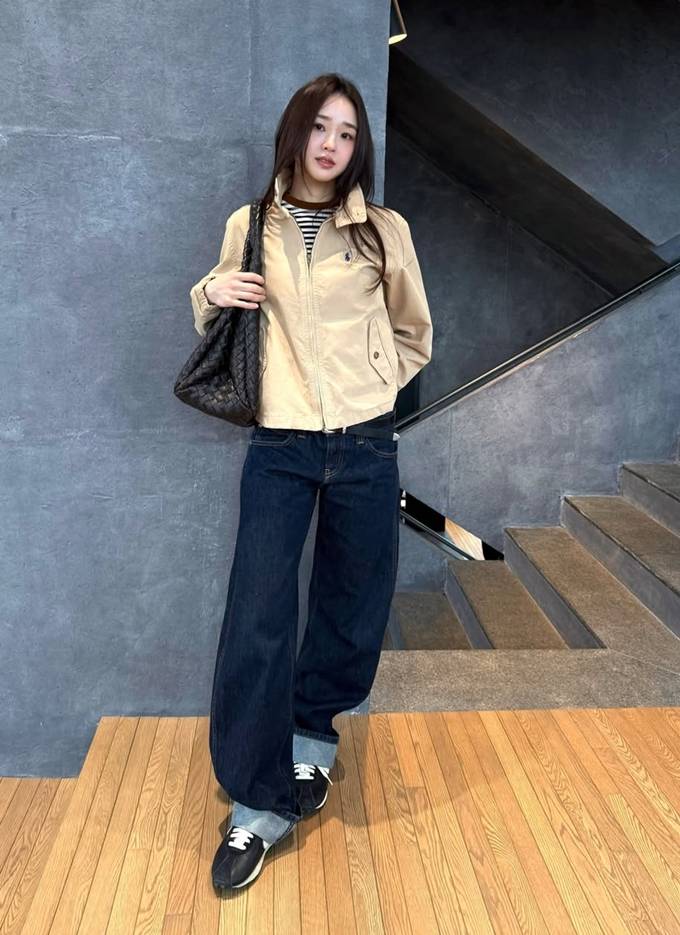 공개한 사진에서 손연재는 바지는 통이 넓고 기장이 긴 데님 팬츠를 롤업하고 재킷은 기장이 짧은 크롭 하이넥 집업 스타일을 매치해 스타일리시한 봄 외출 스타일을 완성했다.