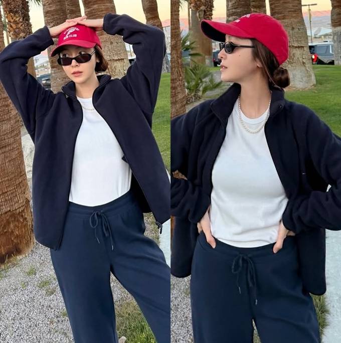 공개한 사진에서 제시카는 베이직한 화이트 티셔츠에 네이비 컬러의 집업 재킷을 입고 여유로운 핏의 조거팬츠를 매치한 애슬레저룩으로 깔끔하면서도 감각적인 스타일을 연출했다.