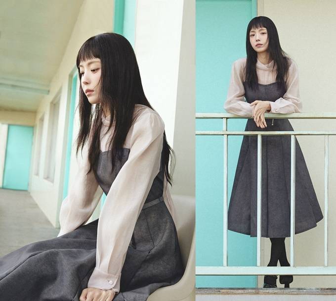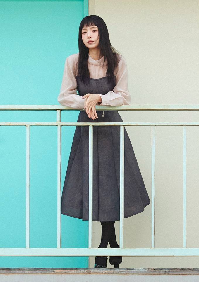 ↑사진 = 손나은이 착용한 'JJ지고트' 레이어드 원피스