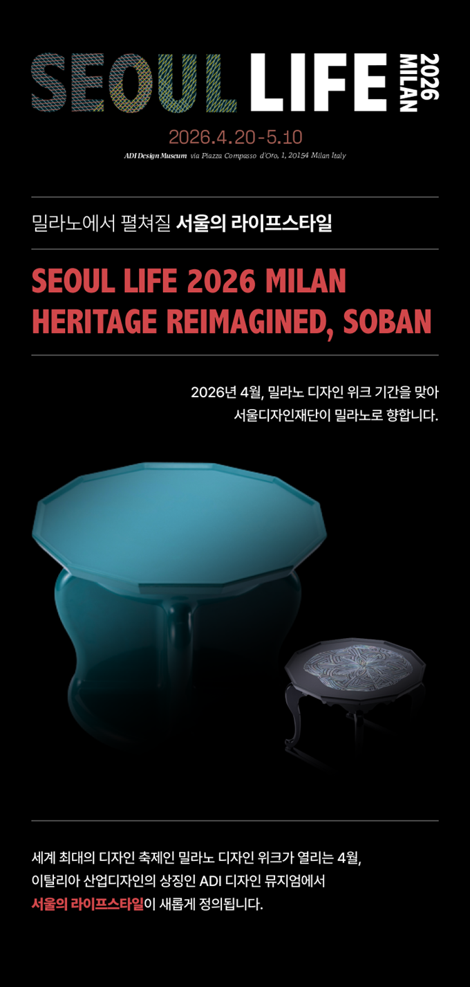 서울특별시와 서울디자인재단은 2026 밀라노디자인위크를 맞아 '서울 라이프 2026 밀라노 헤리티지 리마인드, 소반(SEOUL LIFE 2026 MILAN – Heritage Reimagined, Soban)'을 개최한다.