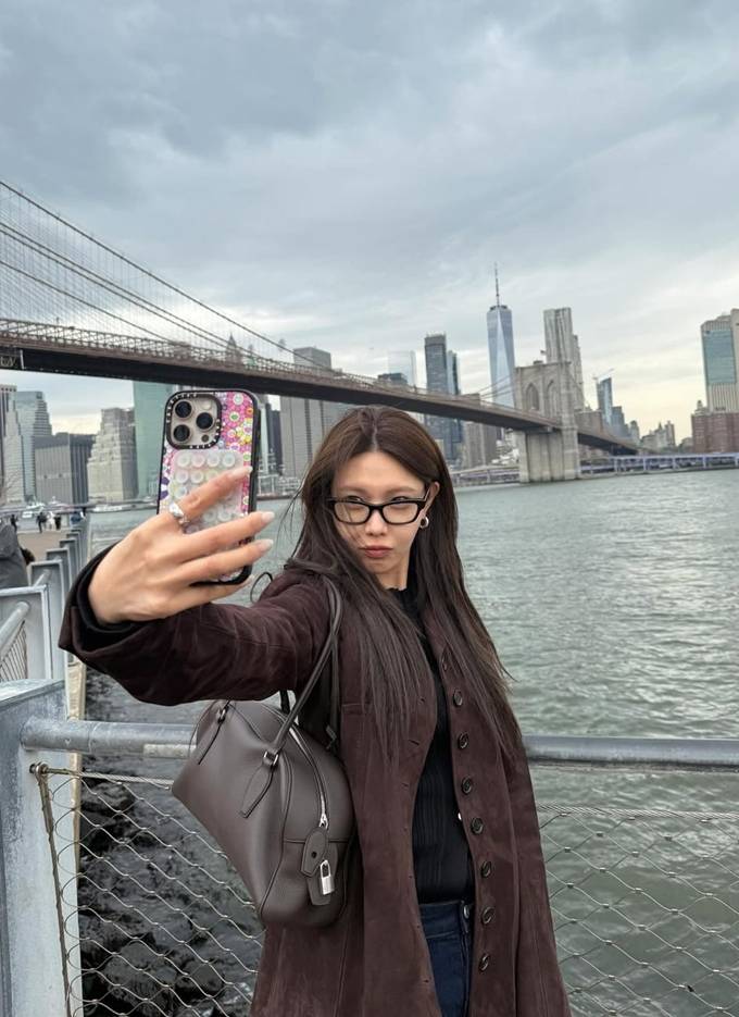그룹 소녀시대 수영(최수영)이 외투를 입었다 벗었다를 반복하는 간절기 여행룩으로 뉴욕을 즐겼다.
