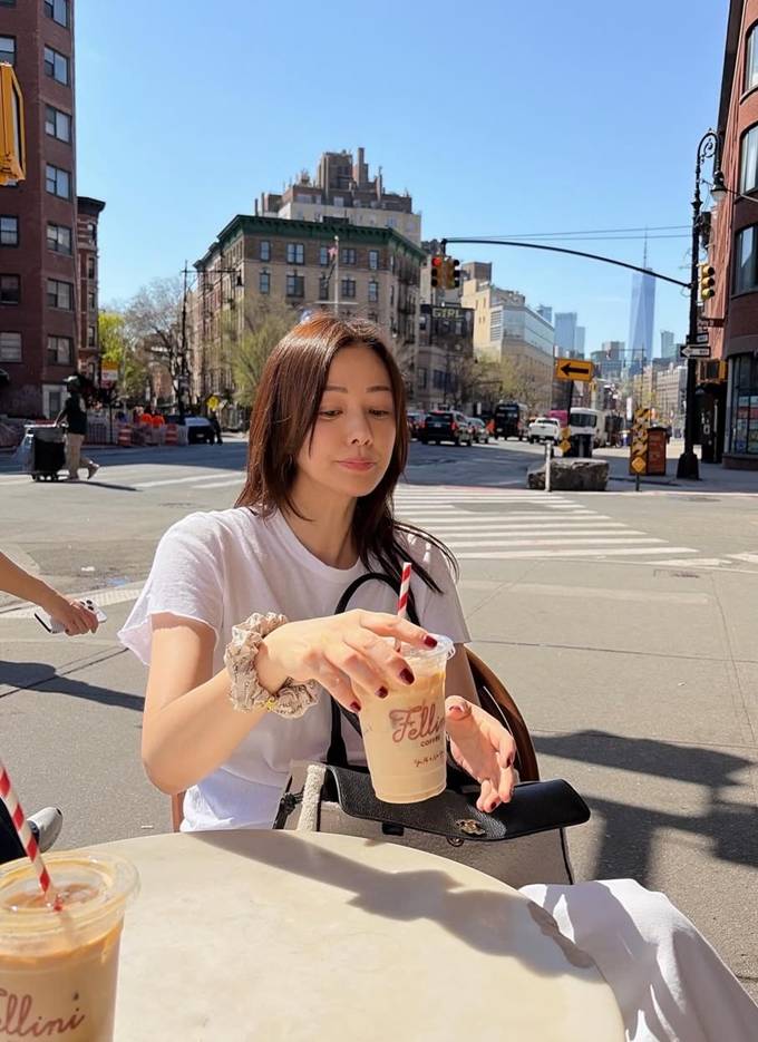 손태영, 뉴욕 벌써 한여름! 달랑 반팔 하나로 끝 화이트 티셔츠 외출 데일리룩
