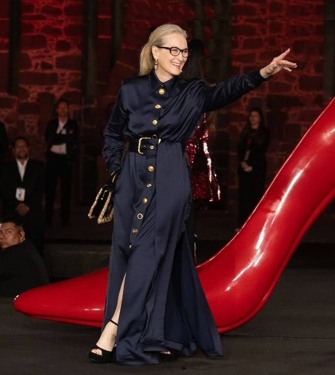 13. 4월 8일 서울 프리미어 시사회 레드카펫 행사에서 메릴 스트립은 셀린느의 케이프 점프슈트 드레스를 착용, 압도적인 존재감을 발산했다.