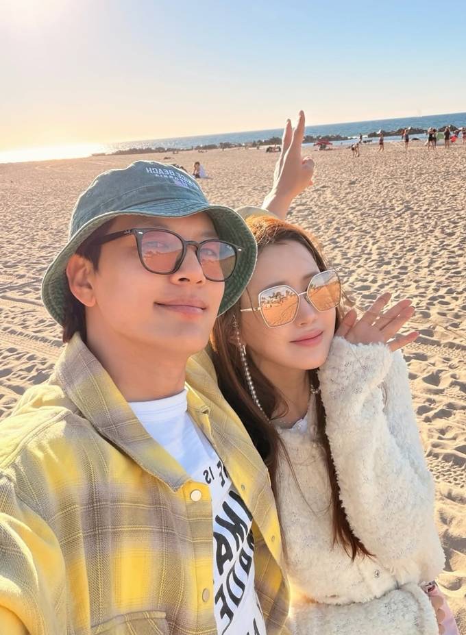 배우 이다해가 LA에서 와이드 데님 팬츠에 크롭 재킷을 매치한 레이어드 산책룩으로 남편 세븐과 저녁 노을을 만끽했다.
