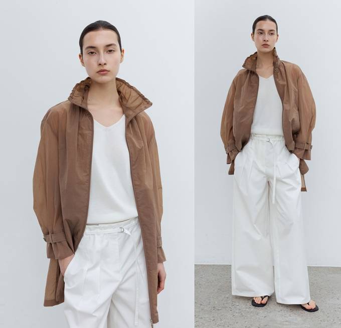 '쉬즈미스'의 시어 소프트 재킷은 가볍고 부드러운 시어 소재의 미니멀한 디자인으로 같은 소재의 셋업으로 출시되었다.