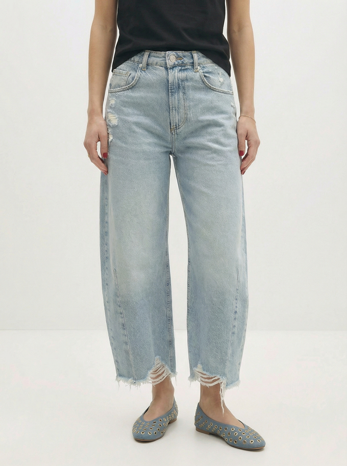 항아리 닮은 둥근 팬츠, 베럴 진(barrel jeans)이 올해들어 점점 인기를 더해가고 있다.