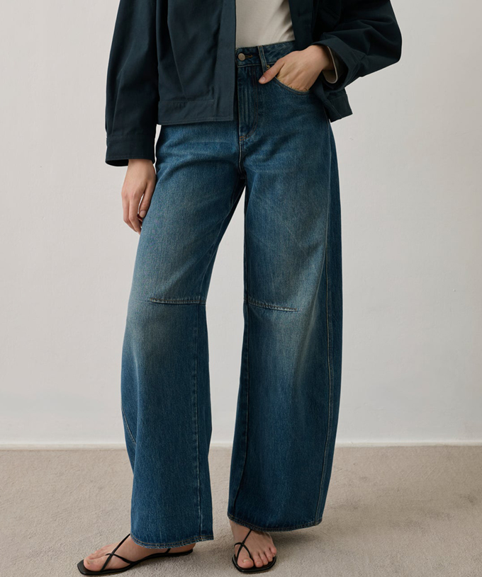 배럴진(Barrel Jeans)은 이름처럼 배럴(barrel, 통)을 닮은 실루엣으로, 허벅지부터 볼륨을 더한 뒤 무릎 아래로 갈수록 다시 좁아지는 곡선형 데님을 말한다.