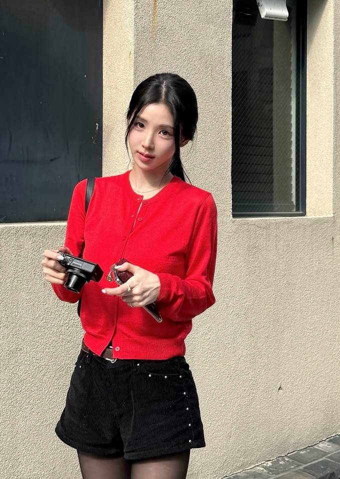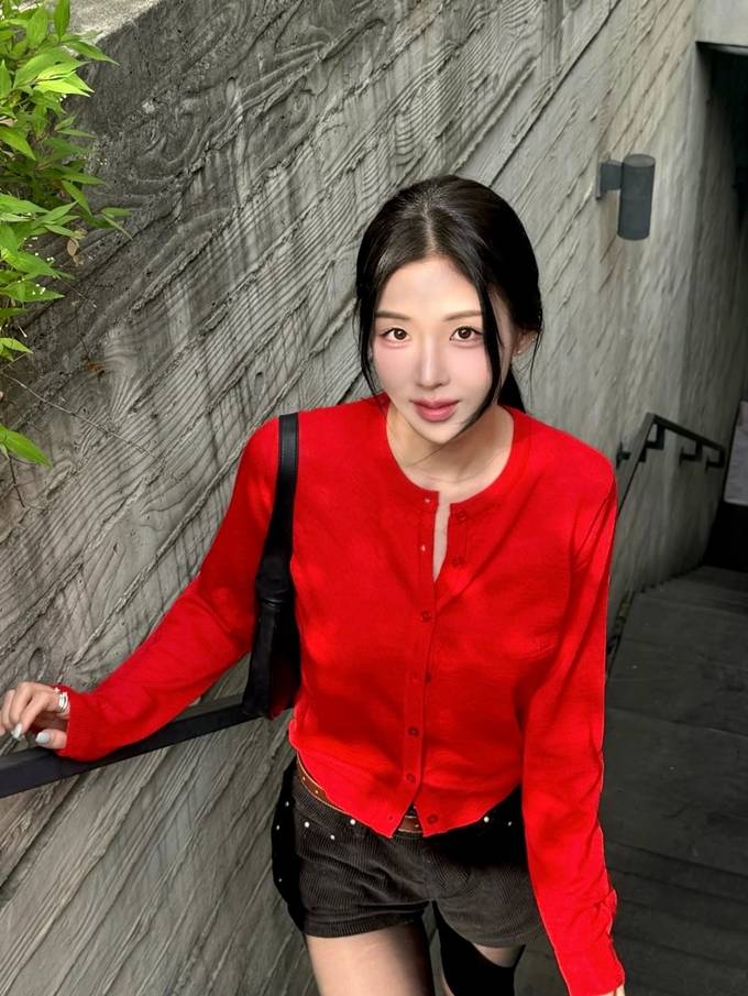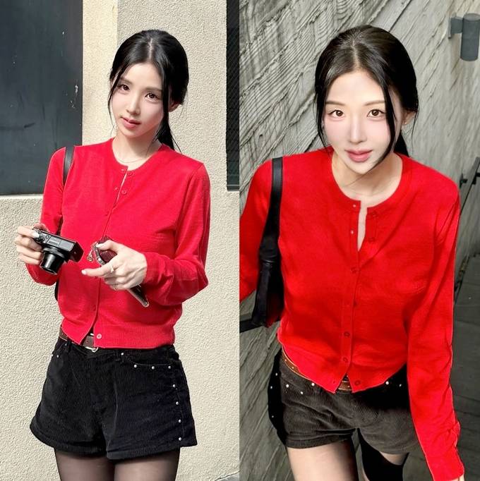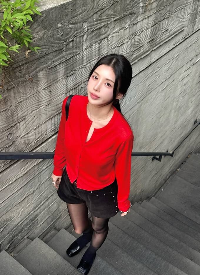 공개한 사진에서 강다은은 늘씬한 각선미의 블랙 쇼츠에 레드 컬러의 니트 카디건을 걸친 외출룩으로 여리여리한 슬림한 몸매를 드러냈다.