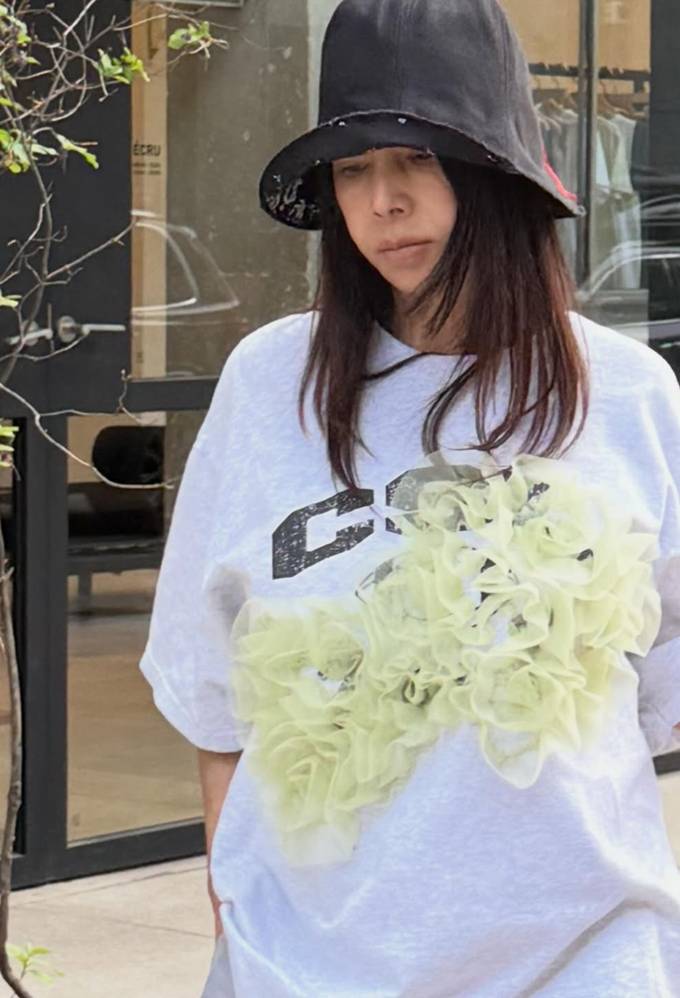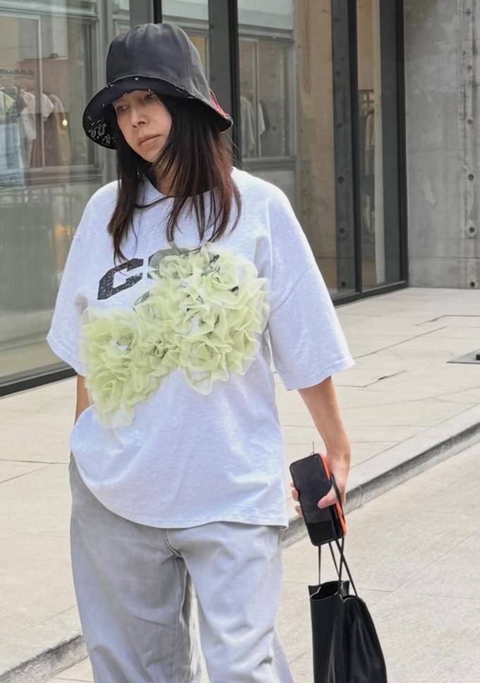 공개한 사진에서 황신혜는 루즈핏 화이트 티셔츠에 입체적인 노란 플라워 장식이 더해진 포인트 아이템을 착용해 단번에 시선을 끌었다. 밋밋할 수 있는 기본 티셔츠에 볼륨감 있는 꽃 디테일을 더해 유니크하면서도 화사한 분위기를 완성한 것이 특징이다.